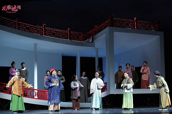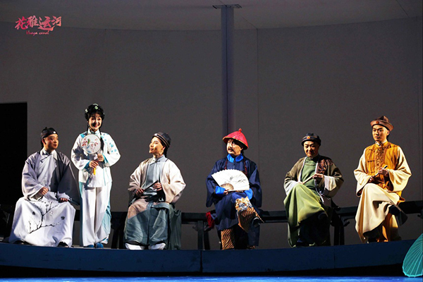 戏曲是中华文化的瑰宝,作为北京演艺集团旗下的戏曲院团,近年来,北京市河北梆子剧团在集团艺术生产孵化平台下坚持守正创新,努力用传统艺术展现时代风貌,先后创排推出《人民英雄纪念碑》《美狄亚》《弄巧成拙》《呼延庆打擂》《美猴王大战金钱豹》《年关》等多部优秀作品,获得各界好评。具有深厚文化底蕴、浓郁人文气息的《花雅运河》同样承载着剧团传承与创新发展戏曲文化的使命与担当。该剧在艺术创作上突破时空局限,舒展自如的叙事手法,让观众在“戏中戏”结构中驰骋想象,在“戏里”“戏外”间自由穿梭,在燕赵悲歌之中感悟人世间跌宕起伏的波澜之声。“富贵图烤火”“杜十娘沉船”等经典唱段与踩跷等传统技巧的展示,及剧中穿插的梆子、昆曲、扬州小调、秦腔等,生动再现了当时争奇斗艳、百家争鸣的梨园盛景,为观众呈现出一部流动的戏曲艺术史。同时,舞台上具有运河民俗风情的水幕、简约质朴的船型舞美设计,用现代舞台语汇表现戏曲的“写意”之美,在千变万化中营造出庭院、画舫、长廊、戏园、楼阁等不同的空间,点染出一幅绚丽的运河人文画卷。