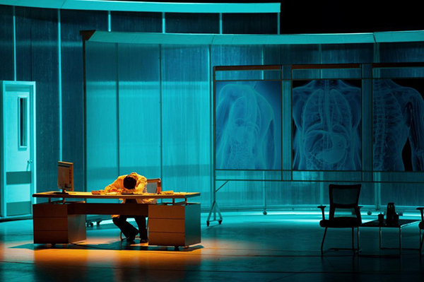 亮点三:诗意的故事结构与舞台呈现。编剧采用了诗化的叙事结构,选取代表主人公崇高精神的几个闪光点展开,把主人公的生命态度、职业态度、军旅情怀融进去,并围绕主人公,通过妻女、同事、患者等人物的侧面烘托,从而对主人公的人物形象、精神气质进行立体、真实、生动、细腻的戏剧表达,散点叙事,形散神凝,紧凑、有效,让观众在戏剧展开和人物命运的变迁中不断被感动,情感不断升华。剧中的语言很生动,一些桥段的设计很生活化,很有趣味。导演的处理张弛有度,舞美设计大气且不失灵动,表现方式非常有想法有创意,比如用奔跑来表达主人公的精神追求,这些舞台行为很好地表达了主人公的丰富心理和精神气质。