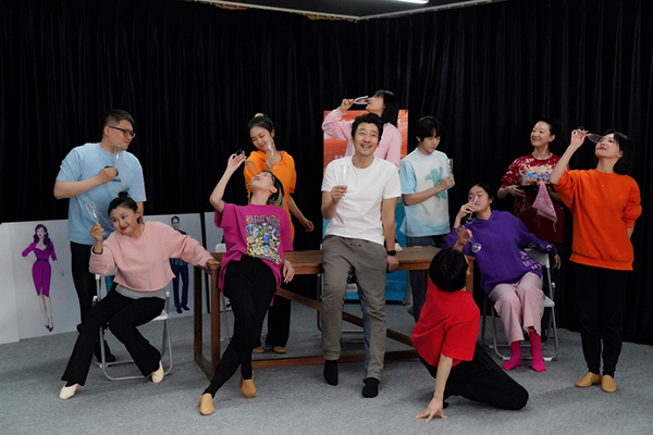 探班现场刘天池导演选择第二幕,第一场进行彩排——帕尔费先生家里正在举办 Party。