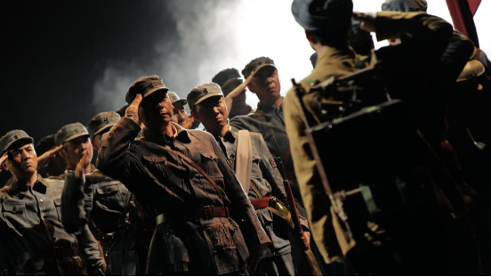 《铁流东进》首演舞台。中国国家话剧院供图(塔苏摄)