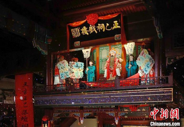 4月19日晚,“会馆有戏”之正乙祠演出在修缮一新的正乙祠戏楼启幕,为观众带来沉浸式体验。 富田 摄