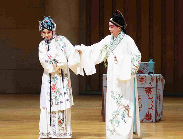 为了让观众获得直观感受,杨凤一请青年演员朱冰贞、翁佳慧、邵天帅、王琛为大家表演了《牡丹亭》《百花赠剑》等剧目的节选。