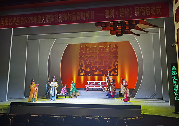 4月22日晚,国家艺术基金2020年度舞台艺术创作资助项目湘剧《楚辞》在长沙湘江剧院上演,拉开了展演的序幕。