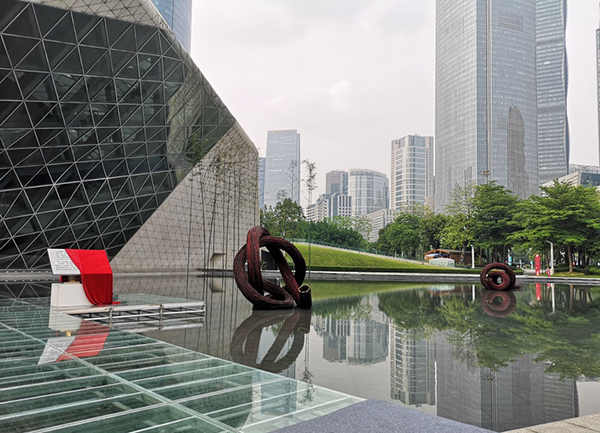 据介绍,原创装置作品《珠水·双吟》以“未来”为灵感,由广州大剧院联合著名花艺设计师苏丽思共同打造。《珠水·双吟》坐落于广州大剧院一侧水池中,以金属和红柳为原材料,“双龙”形态与“珠江双砾”呼应,犹如广州大剧院建筑设计师扎哈?哈迪德笔下的曲线盘旋,寓意广州大剧院在未来以“龙”之势引领中国艺术文化“走出去”,以“竹”之韧坚守华南艺术一方土壤,以“花”之茂绽放艺术精彩百态。