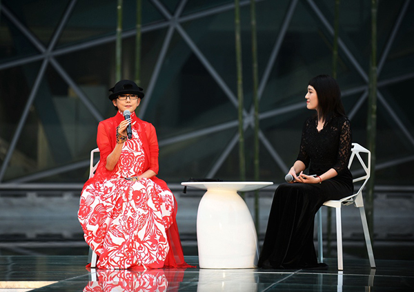 舞蹈家杨丽萍(左)介绍舞蹈作品《春之祭》