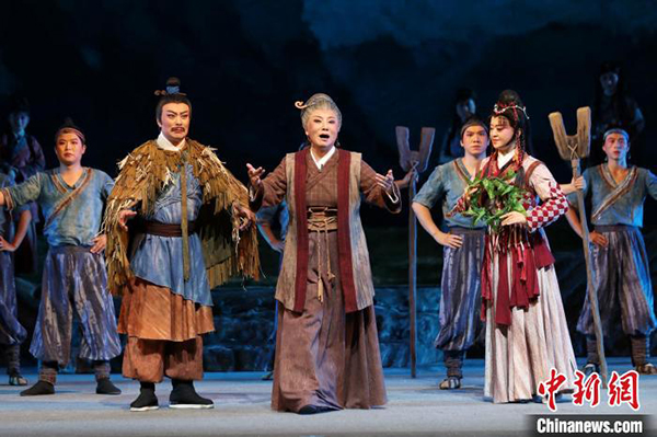 中新网兰州6月14日电 (记者 丁思)山河情、家园情、母子情、夫妻情……6月13日晚,由甘肃省陇剧院创演的大型原创陇剧《大禹治水》作为“春绿陇原”惠民演出剧目在甘肃黄河剧院上演。此次演出不仅拉开了省内巡演的序幕,同时也为备战文化和旅游部“2022年首届黄河流域戏曲演出季”提前“热身”。