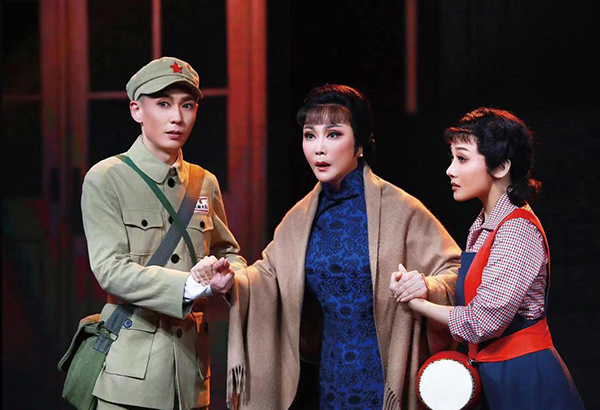 《革命家庭》的演出显示出剧作的高质量,充分展示了天津评剧院的强大艺术实力。该院院长曾昭娟曾获文华表演奖、两获中国戏剧梅花奖等众多重要奖项。她在《革命家庭》一剧中担任领衔主演,不仅使自身的艺术水平得到淋漓尽致的展现,更在新的挑战和创造面前,通过对革命者方承的经历和内心的深刻体察和悉心感悟,努力实现了表演上的自我超越。从讲述者母亲的端庄,到新娘发髻“粑粑头”的妩媚,到剪成革命头“二道毛”的飒爽,到作为南洋富商女性的典雅,再回到胜利后母亲的深情,头上发式与身上服饰都是随剧情的发展和情境的变化而变化,准确地体现出人物应有的年代感和年龄感。在此过程中,要不断地进行换装与抢装,这虽然给表演带来了一定的难度,但曾昭娟很好地掌握了演出的节奏,并且不留痕迹地完成了造型上的转换。作为一位妻子与母亲,新婚、怀孕、背负襁褓等,都是其中应有之义,也是重要的符号与表征,所象征的是新生命的孕育、诞生和成长,所寓意的是母亲的艰辛、伟大与高尚。而作为一位女性革命者,这一角色坚贞内敛、不折不挠、深明大义,有着不同于一般的独特担当。这一切都被曾昭娟以其唱念做表上极其精湛稳健的拿捏与驾驭,特别是动静有致、仪态俊美的身段,声情并茂、穿云裂帛般的演唱,着力地塑造和演绎出来,使方承这个女性革命者形象、使这个曾经流血献身的革命家庭,在剧作中产生了一种直击人心的艺术震撼力。