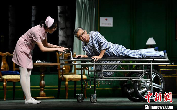 中新网北京8月3日电 (记者 应妮)大幕拉开,三面围合的空中高台上,红光掩映着白桦林,演员在巴扬的配乐中悠然吟唱,视觉与听觉的双重享受带领观众进入当代俄罗斯的氛围……双幕喜剧《高级病房》2日在顺义大剧院公益首演。