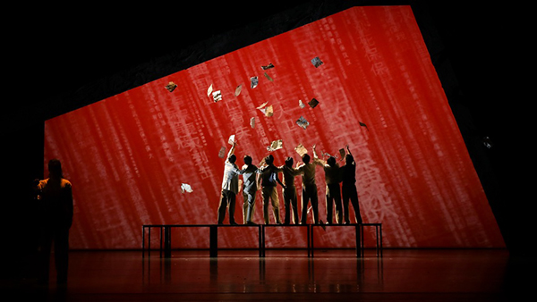 “风在吼,马在叫,黄河在咆哮,黄河在咆哮……”舞台上,随着《黄河大合唱》的磅礴气势,一条条大红绸从天而降,深陷于苦难的人民站了起来,向着希望不断鼓掌,台上台下掌声同频共振。近日,原创当代舞剧《冼星海》再次“燃”情北京,在国家大剧院第二轮上演。