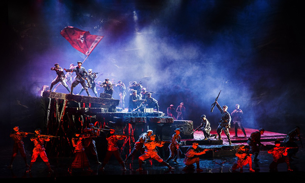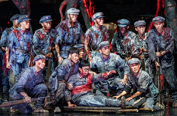 原创音乐剧《血色湘江》是广西歌舞剧院的精品剧目,演出由广西歌舞剧院青年声乐演员担纲。该剧入选了文化和旅游部“庆祝中国共产党成立100周年舞台艺术精品创作工程”重点扶持作品、第二届全国优秀音乐剧展演、广西当代文学艺术创作工程扶持项目,获全国第六届少数民族文艺会演“舞台美术奖”。秉承着常演常新、精益求精的精神,主创团队对该剧进行了3次整体修改提升。