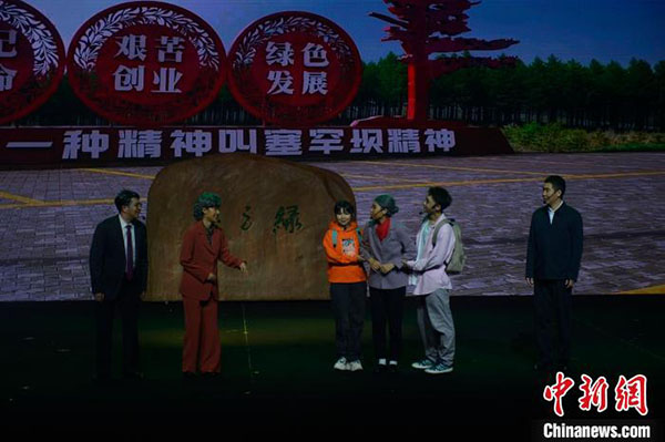 中新网承德8月24日电 (张桂芹 关鹏玉)“是谁把爱交给蓝天,让千里松林拨动美妙的琴弦,是谁把梦留给大地,茫茫荒漠变成多彩画卷。”23日晚,由河北民族师范学院打造的大型原创歌舞剧《情系塞罕坝》巡演活动在河北承德启动。