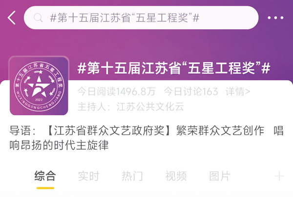 为进一步增强公共文化产品惠民效果,江苏公共文化云平台微信公众号、抖音、微博等平台实时更新终评活动最新资讯与视频资源,方便群众零距离感受群众文化发展的蓬勃态势。云平台微信公众号、抖音、微博等平台系列有奖互动活动也得到广大群众的热烈支持与热情参与。该届赛事活动借助互联网新媒体,扩大优质公共文化服务资源辐射覆盖范围,让本土培育的群众文艺优品、精品真正走进百姓文化生活,让群众文艺创作成果更多地惠及广大人民群众。
