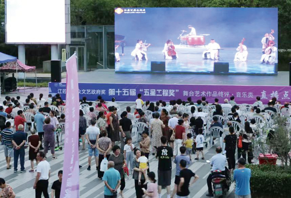 作为江苏群众文艺政府奖,“五星工程奖”评选活动始终坚持与文化惠民紧密结合,致力于将各地重点打造的优质群众文化作品回馈给广大群众。终评活动分别在射阳县、句容市等4个县(市、区)演出9场,活动组织方通过线上赠送入场门票的方式,组织当地群众线下有序进场观看。9场演出活动全程通过江苏公共文化云平台、17个省级公共文化云平台和举办地融媒体网络平台、电视台直播,累计在线观看人次达493万。多地还设立网络直播视频线下观看点,打造百姓家门口的“视听盛宴”,最大化拓展广大群众的观演空间,满足线上线下广大群众的观演需求。