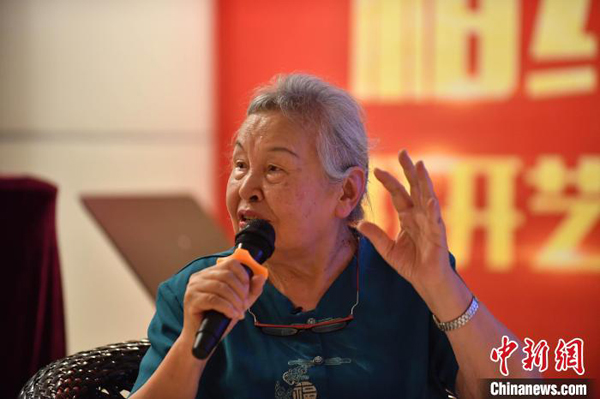 中文版《茶花女》日前在福建大剧院连演两场。图为8月27日晚间,指挥家郑小瑛在开演前为观众讲戏。 宋晖 摄