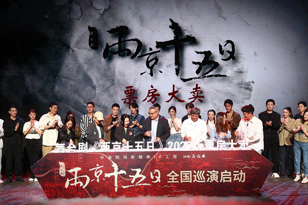 9月23日,舞台剧《两京十五日》2022版全国巡演暨北京站开票启动仪式在北京天桥艺术中心举行。舞台剧《两京十五日》2022版由中国对外文化集团总出品、中演演出院线发展有限责任公司出品、中央戏剧学院联合出品、北京四海一家文化传播有限责任公司制作。当天,中演演出院线发展有限责任公司董事、总经理张利以及北京四海一家文化传播有限责任公司总经理、本剧制作人于婷婷,本剧导演赵淼等主创团队亮相活动现场,与大家分享了剧目创作的幕后故事和感悟。据介绍,舞台剧《两京十五日》2022版将于11月4日至6日在北京天桥艺术中心预演,随后开启全国巡演。