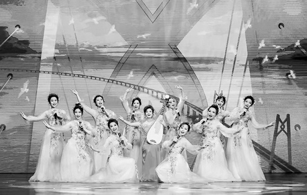 “一轮红日耀海滨,长虹飞贯若龙腾,水拍桥梁传声韵,一弦一柱奏佳音,港珠澳大桥连血脉,人工岛上会亲人……”一段走心唱词,三地共同创排,几番款款深情。曲艺类作品广东南音新唱《同心结》荣获第十九届群星奖,开启港澳人民获此奖项之先河,也实现了粤港澳在群文领域通力合作的重大突破。