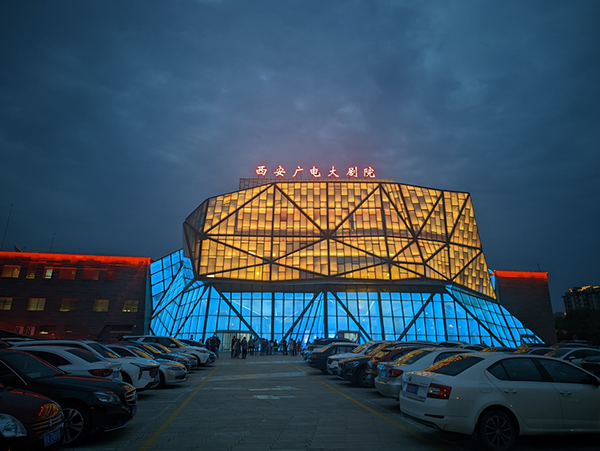西安广电大剧院作为曲江文化聚落的重要组成,坐落于曲江新区核心地段,建筑面积约8000平米,其中包括广电大剧院和石榴花剧场,广电大剧院可容纳千人观演,石榴花剧场可容纳500多人,剧院配备500个停车位,在举办大型活动、重大演出方面具有显著优势。