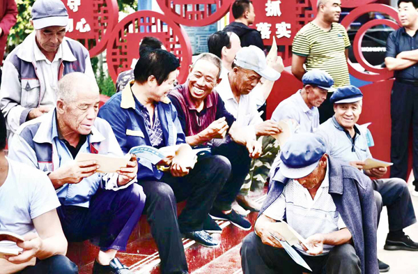 “文艺轻骑兵”为基层群众发放普法资料 宁夏文化馆供图