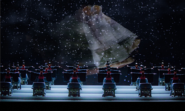 因为定位在史诗,《苏秦》对画面、造型、手段都比以往的女子越剧要来得大,气势更宏伟,这也调动了浙江小百花越剧团演员身上数十年的积累,观众可以在现场感受到“天下第一女团”如何秒变“群雄逐鹿”的战国之风。