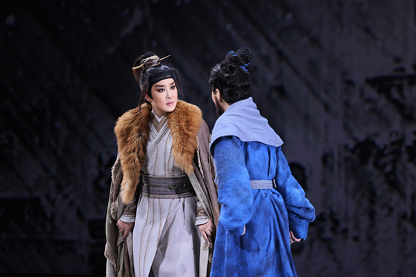 这部大戏立起了一个不一样的苏秦。而对蔡浙飞而言,饰演苏秦也是她新的起点、新的挑战、新的跨越。诗画的舞台,唯美的爱情,这是很多人喜欢浙江小百花越剧的地方,但此次的《苏秦》,是史诗的风格。