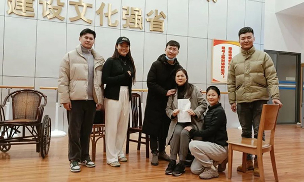 经过认真细致的前期创作,12月1日,两个小戏分别建组,并即刻投入到紧张忙碌的排练当中,见缝插针、紧锣密鼓、加班加点地创作、排练。