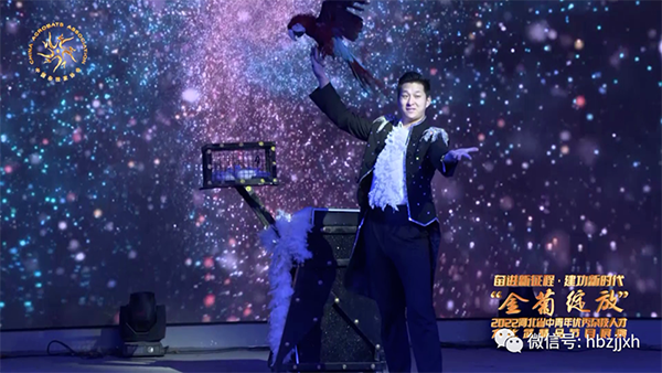 经过一个多月的精心筹备,在克服疫情等不利的形势下,奋进新征程·建功新时代 “金菊绽放”—2022河北省中青年优秀杂技人才大比武精品节目展演12月22日晚在相关直播平台拉开帷幕,第一场精品节目展演中,入选中青年人才及代表作品:杨冬丽《单手顶》、张亚泽《五人坛技》、肖贺康《摇摆高拐》、冯紫同等《钻地圈》、李万金等《红色向往》、张磊等《滚环》一个个杂技节目轮番登场;许栋《炫舞飞鸽》、沈爽《涟漪·扇变》以及特邀节目《变脸》(王波)将魔术的惊奇、神秘表现的淋漓尽致;李一凡等表演的杂技《龙跃神州—中幡》将整场演出推向了高潮,腾空、翻转、抛接……杂技演员每一个动作都让人心跳加速、凝神屏息,线上观众频频点赞叫好。
