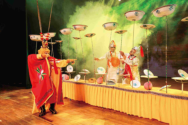山东聊城市杂技团表演杂技节目《西游之闹天宫》