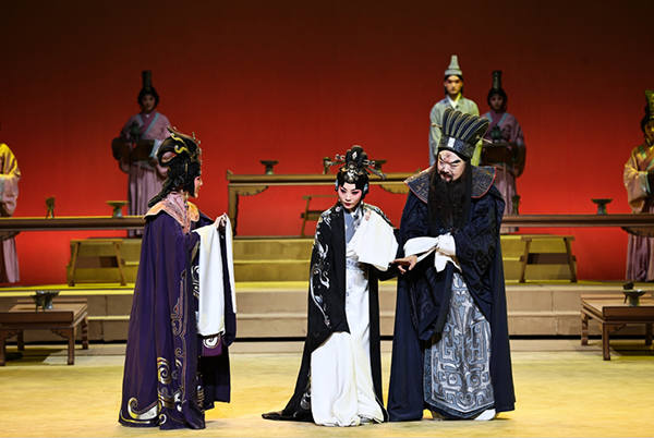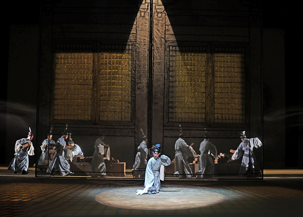 收百世之阙文,采千载之遗韵。秦腔《蔡文姬》的创作,植根于丝绸之路与甘肃丰富厚重的文化沃土,紧紧围绕守护中华民族精神家园的命题,通过“文姬离汉”与“文姬归汉”这个古老的历史故事,将创作重点放在同类题材较少提及的“续史”上,以及主人公对“汉字”“汉简”“汉记”强烈而特殊的情感表达,由此观照和诠释中华文明强大的向心力、感染力以及归属感,强烈地体现出中华文化根脉和精神家园对人的特殊力量。同时,该剧契合“一带一路”倡议,从汉匈和好、人民渴望和平的角度,展现了民族团结给人民群众带来的美好福祉、和平发展的时代主题,彰显出该剧巨大的现实意义。在艺术表达上,既有秦腔宽音大嗓、直起直落、慷慨激越的风格,又兼备优美动听、缠绵悱恻、凄切委婉的秦腔“肖派”唱腔艺术特点,充分展现出各主要角色的人物特点,引人入胜。