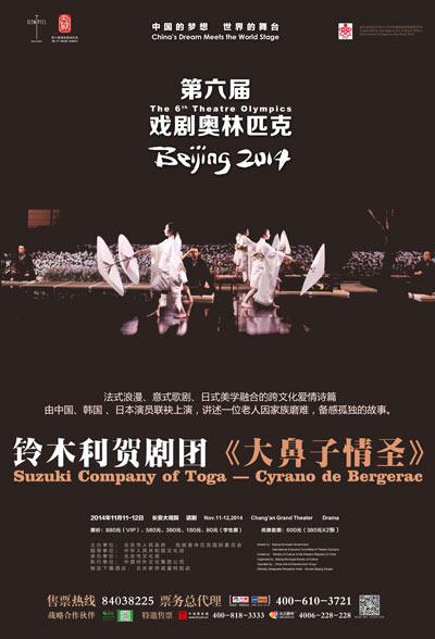 隐瞒一生的暗恋、以为是成全的错爱、死别前才恍悟的真心……——再没有比《大鼻子情圣》更适合“双11”和“情侣去死去死团”的戏剧了——3个人,两段情,都是还没开花就已凋零。11月11日-12日,第六届戏剧奥林匹克为您送上铃木忠志版《大鼻子情圣》,看日本戏剧大师如何料理法国经典剧作,陪“屌丝情圣”走完一生暗恋之路。