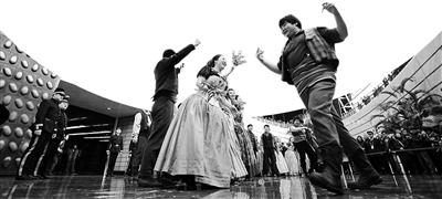 10点整,管乐演奏家们在公共空间吹响了号角。在音乐厅,著名指挥家谭利华带领北京交响乐团奏起中外名曲,广播民族乐团则以《花好月圆》《春江花月夜》等民乐经典,展现着丝竹管弦的典雅意蕴。南玻璃幕墙下,伴随着“怀念战友”、“花儿为什么这样红”等经典旋律,即将于24日上演的大剧院原创歌剧《冰山上的来客》带来剧中的精彩片段展示,引人入胜的故事、荡气回肠的音乐、热情洋溢的舞蹈,让很多观众都激动地举起了相机,纷纷拍照留念。