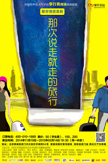 我们一直在旅行,一直在等待着某个人可以成为我们生活中的伴侣,陪我们走过一段无法替代的回忆。在那里,我们有特殊的记忆,关乎于亲情之忆、友谊之花、爱情之树、以及感动之泪。由青年导演黄彦卓执导的话剧《那次说走就走的旅行》 正在繁星戏剧村温情上演。这是一部适合全家人一起看的戏,台上的故事或许是你家中正在发生的故事,正所谓“台上自有座中人”。旅行在于“相遇”和“修行”,爱情不正是如此?时至年末,你是否身心疲惫?你是否需要身心“清零”,你是否需要通过某种方式愉悦身心?那就来一场“说走就走的旅行”吧。