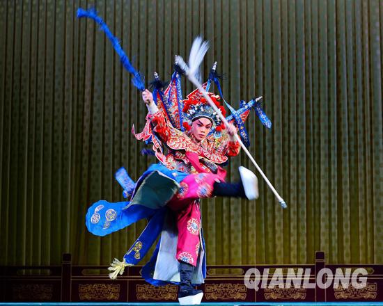 《小商河》是长靠武生的经典剧目,剧中不仅有大段的昆腔,还有繁重的武打技巧动作,唱做并重。千龙网网友:大厨摄