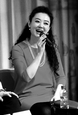 歌剧《八月桂花遍地开》的主演王庆爽现场演唱。北京晨报记者 柴春霞/摄
