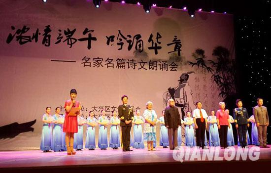 千龙网北京6月19日讯 如火的激情、经典的诗章、热情的观众、经久不息的掌声……由大兴区文委主办,大兴区文化馆承办的“浓情端午 吟诵华章”名家名篇诗文朗诵会6月18日在大兴影剧院举行。
