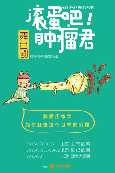 患有非霍奇金淋巴瘤的80后超人气美女漫画家熊顿,用画笔记录了自己住院治疗的经历,在网上连载引发全国人民关注,王菲、姚晨、陈坤等明星都曾在微博中表达对熊顿的祝福。2012年11月16日,熊顿去世,而记录她住院点滴生活的漫画《滚蛋吧,肿瘤君》印数超80万册,天涯热帖点击超2000万,微博事件关注超1亿。根据超人气绘本《滚蛋吧肿瘤君》改编的同名话剧已开始紧张排练,蒋小涵、郭家铭、曲双双等优秀青年演员,因爱与感动加盟本剧。