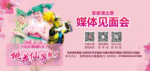 中国木偶剧院和北京花乡花木集团合作,在世界花卉大观园北门的中国插花艺术博物馆,打造的“中国木偶剧院花乡剧场”拉开帷幕;活动当天,弘扬“中国梦、未来梦、孩子梦”的大型音乐剧《桃花仙子》点靓剧场,“化作春泥最护花”的“小桃花”精彩的表演和唯美的音乐让剧场充满互助、友爱的正能量。此后,《新大头儿子和小头爸爸》、《三只小老虎》、《木偶奇遇记》等中国木偶剧院的20余部精品剧目,也将陆续在剧场和观众见面,成为集游园、看戏、体验于一体的儿童文化体验中心。