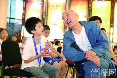 9岁的张岷钦小朋友,是四年级学生,平时就喜欢参加戏剧课程。上周五上午,他早早地就来参加这堂“艺术家零距离”——陈佩斯大师课。张岷钦说:“今天的活动让我们能和陈佩斯爷爷直接交流,向他学习喜剧表演,我们都非常期待。”