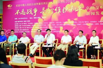 为纪念中国人民抗日战争暨世界反法西斯战争胜利70周年,8月25日,国家大剧院将举行特别策划的《不忘战争,是为了维护和平》京剧交响音乐会。日前,国家大剧院举行新闻发布会,国家大剧院副院长李志祥,北京京剧院副院长李师友,本场音乐会音乐总监杨乃林,特邀指挥胡咏言,导演石宏图,演员杜镇杰、胡文阁、张馨月以及国家大剧院管弦乐团首席李喆出席发布会,介绍了这场音乐会的策划立意与演出亮点。