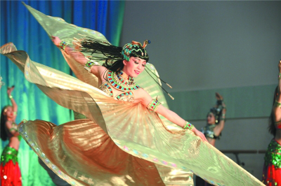 《东方之爱》加紧排练,演员们正在排演阿拉伯舞蹈《幻沙魅惑》。王徐峰 摄