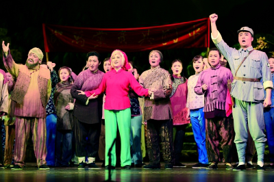 舞台上,当演员们唱起“人家的闺女有花戴”“进他家来几个月啊”“我不是仇人是亲人”等唱段,台上唱、台下哼,观众无不陶醉其中。也正是这些唱段的广泛传唱,让“民族歌剧”深入人心。