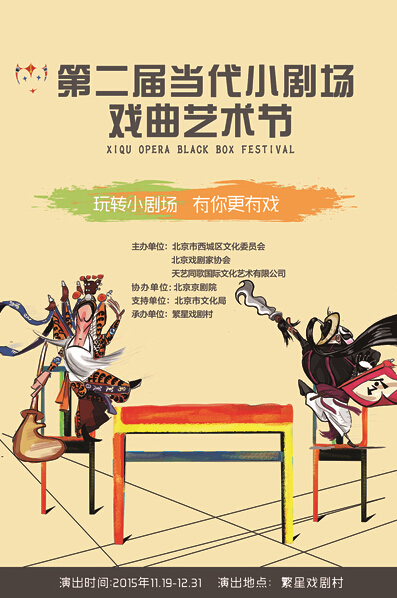 第二届当代小剧场戏曲艺术节自11月19日在繁星戏剧村举办以来,引发了戏剧界的热烈反响,来自全国多个省市地区的不同剧种,共同带来了50场的演出。演出期间的多个戏曲,都有着很多新鲜的想法和血液,在探索和赋予京剧更多可能性的同时也更好的把握住了年轻人的脉搏,无论是戏曲节的开幕大戏《三岔口2015》还是京剧《倾国》和《马前泼水》都带给京剧演出界带来了很大的触动,例如创作于2010年的京剧《马前泼水》,此次在老戏《马前泼水》的基础上旧曲翻新,从内容、人物、题旨上对老戏中的朱买臣夫妻的恩怨、命运作了新的诠释,特别是写出了崔氏的丰富内心世界和源于现实生存和环境的种种行为根源,突出了男子求功名与女人“嫁汉嫁汉,穿衣吃饭”生活信条的矛盾。全剧情节流畅,时而爆出动人的火花。剧中人物语言和唱词在古代与现实中跳越,具有特殊的艺术魅力,在戏曲节的三天演出中吸引了众多观众的热捧,这些观众之中既有老戏迷、也有学美声的学生,也有来自韩国大学的教授,在演出结束后他们都给予《马前泼水》极高的评价。艺术节中多个戏曲,在融合了多元素的表演形式后,将新颖的形式揉进了唱、念、做、打的表演程式和表演手段上,也融进了人物的性别、年龄、身份等特征所形成的行当上,获得了很多年轻观众成为国粹艺术的粉丝,也能让老戏迷痛快的过了把戏瘾。