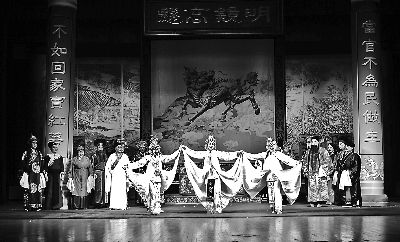 尽管这是一部传统名剧,但面对当代观众,仍然要做适当调整,以适应当代观众的审美需求。于是,我们删除了“逃荒”“冷楼”等与故事主线较为游离的情节,将原本3小时的演出时间压缩为1小时40分钟,加快演出节奏,适合当今观众欣赏。