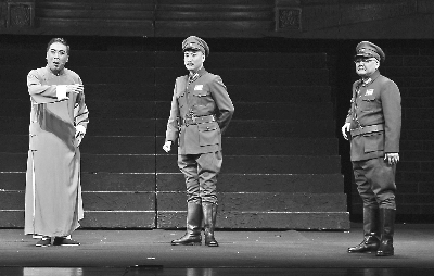 《续范亭》的成功在于艺术构思与艺术展现的新颖别致。剧中人物无疑是全剧的核心。在新编晋剧《续范亭》中,晋剧表演艺术家、梅花奖得主武凌云恐怕体会得最为深刻。接到本剧的任务,他数次深入续范亭故里,仔细研读相关传记,反复走访续范亭后人和相关亲历者及其后代,几乎不放过任何与续范亭相关的工作、生活细节,包括其思维方式,甚至一个眼神都在武凌云试图掌控的视野之内,目的就是塑造可信的英雄,还原真实的历史。当武凌云以续范亭将军的形象迈上舞台将角色呈现在观众面前,我们仿佛看到矢志不渝追随孙中山的辛亥元老续范亭从历史深处向观众走来。当沉着稳重的杨虎城和温文尔雅的少帅张学良亮相舞台,观众决然看不出他们是在演戏,似乎重又回到烽火连天、硝烟弥漫的战争岁月。