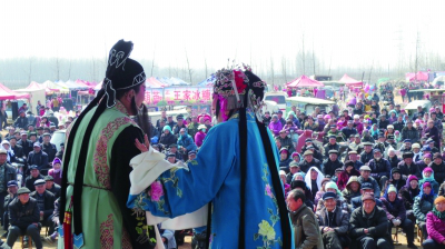 临沂市柳琴戏传承保护中心演员在乡下演出传统柳琴戏。