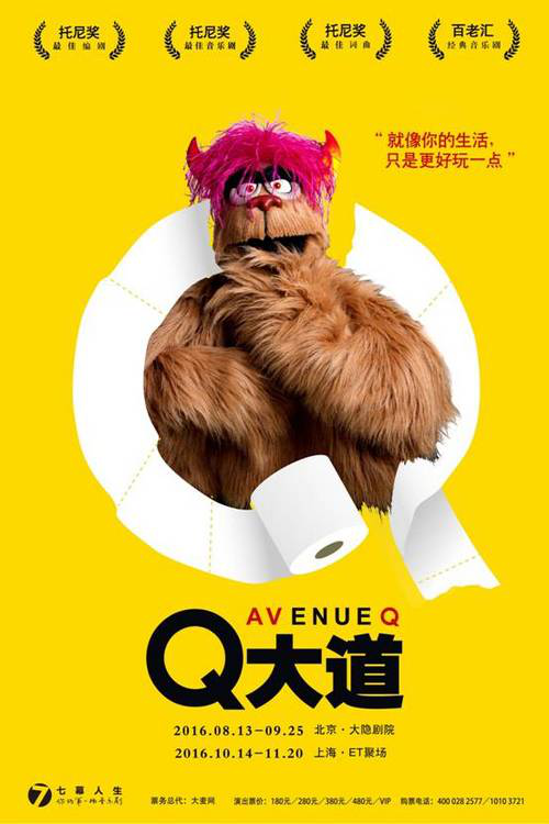 由七幕人生音乐剧引进版权、本土化制作的百老汇经典音乐剧《Q大道》自2013年上海首演、并在全国各地演出近300场后,将于2016年携全新演员阵容华丽回归,从6月开始完成包括南京、广州等城市的新一轮巡演后,在北京大隐剧院(8月13日-9月25日)和上海ET聚场(10月14日-11月20日)进行总计61场驻演。