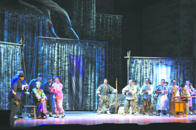 或许正因如此,更加关注于穷苦小人物的《长安梦》,把宏大叙事中那些常常被筛选和被遗忘的个体放到了舞台的中心。历史习惯于大而化之,而人性的光辉更在于微小处的大抉择。《长安梦》以1942年河南旱灾,300万人西出潼关大迁徙,一担两筐逃荒来陕为历史背景,讲述了女主人公小勤,为了生存奋力拼搏,最终叶落长安的故事。剧中,小勤通过为人洗衣洗纱、行走贩卖胡辣汤,与张大因一场事故而结识,并相爱、相守、分别和相盼,生存的艰辛和社会的偏见,不断磨砺着小勤及以其为代表的外来者,他们自强不息、百折不挠,身挑扁担逃难而来,长安城内,又再度挑起扁担,扛起生活的重担和梦想。而这种“扁担精神”,适用于所有白手起家的创业者,也正是这一讲述70年前艰辛历史的豫剧现代戏的现实意义之一。