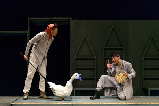 在略显厚重的大命题下,导演黄彦卓用其一贯细腻、矛盾、而又精准的风格,打造出了一部令全场观众笑着流泪的舞台剧。借鉴了莎翁对生命的尊重与敬畏之后,导演黄彦卓在《爱在无爱城》的编排中,大到一个国家、小到一只鸭子、一头牛都有了人的属性。剧中“悍妇”凯瑟丽娜更是在每一次出场时,自带搞笑属性。当全场观众对于凯瑟丽娜这位“悍妇”的形象忍俊不禁的时候,剧中剧外皆是男神的“皮特”的扮演者左凌峰,凭借着温馨而又在感情面前不善于表达的精准情绪把控,使全场观众在全剧的结尾被虐的痛不欲生,泪如雨下。