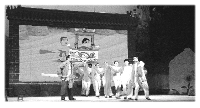 在没有观摩《跑旱船》之前,知道剧中有动漫艺术的介入,我对这种跨界“入侵”心里没底。其一,我担心动漫的介入所产生的变革会不会大于情节矛盾或思维观念的突破。但看过该剧之后,认识上有了改变。旧有的戏曲形式必定需要变革才能使面貌焕然一新。其二,我担心观众看不懂,不接受“另类”艺术的冲击。但从现场观众的反馈来看,他们不仅看得懂,而且乐意看到这种新式表现手法的出现,动漫的手法开阔了他们的眼界。《跑旱船》重在反映新农村经济文化繁荣之后的时代风貌,利用戏曲与动漫的结合,给观众一种新奇之感,进而让观众悟出新时期给农村带来的翻天覆地的变化,也就油然生出自豪之感。这出戏不仅有新农村以旱船为媒、巧结良缘的故事之奇,又有动漫效果所产生的视觉冲击,非常好看。
