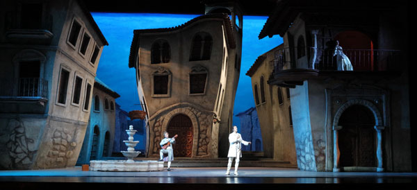 7月13日当晚,随着歌剧指挥莫兰迪引领国家大剧院管弦乐团奏出《塞维利亚理发师》脍炙人口的序曲旋律,大幕拉开,由著名舞台设计师张武设计的“高迪建筑风格”的塞维利亚小镇展现在观众面前。