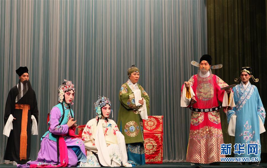 9月15日,演员表演《碧玉簪》。当晚,国家京剧院一行80余人携程派名剧《碧玉簪》在北京交通大学天佑会堂演出,来自首都多所高校的千余名教育工作者应邀观看表演。新华社发(陈仲健 摄)